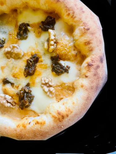 春の山菜の代表格、ふきのとうと信州須坂の塩屋醸造の蜂蜜味噌でふき味噌を作り贅沢にトッピングした特別なピッツァをご案内いたします。ふき味噌のほろ苦さと、4種の濃厚チーズが織りなすハーモニーが楽しめる一枚は、春の食卓を豊かに彩ります♪