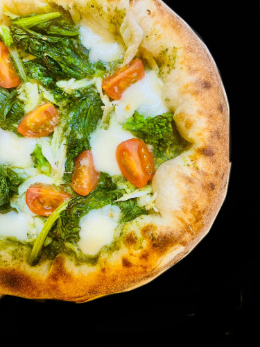 富山の宝と称される新鮮な白エビと、春の訪れを感じさせる菜の花を贅沢に使用した特別なピッツァが誕生しました。香り高いイタリア産バジリコのペーストが濃厚で爽やかな味わいを引き立て、春を感じる絶妙な一枚に仕上がっています。