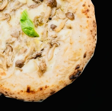 黒トリュフペースト、ポルチーニ(イタリア産)、シメジ、黒舞茸、原種エノキ、モッツァレラ、グラナパダーノ、ブラックペッパー